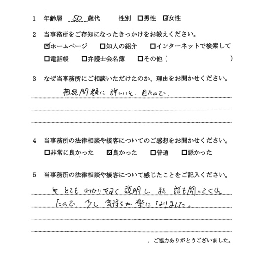 ホームページを見て相続にくわしそうだと思ったから