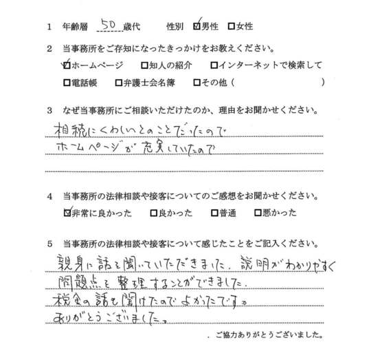 ホームページの豆知識を拝見して相続に詳しそうだと思い、相談しました。